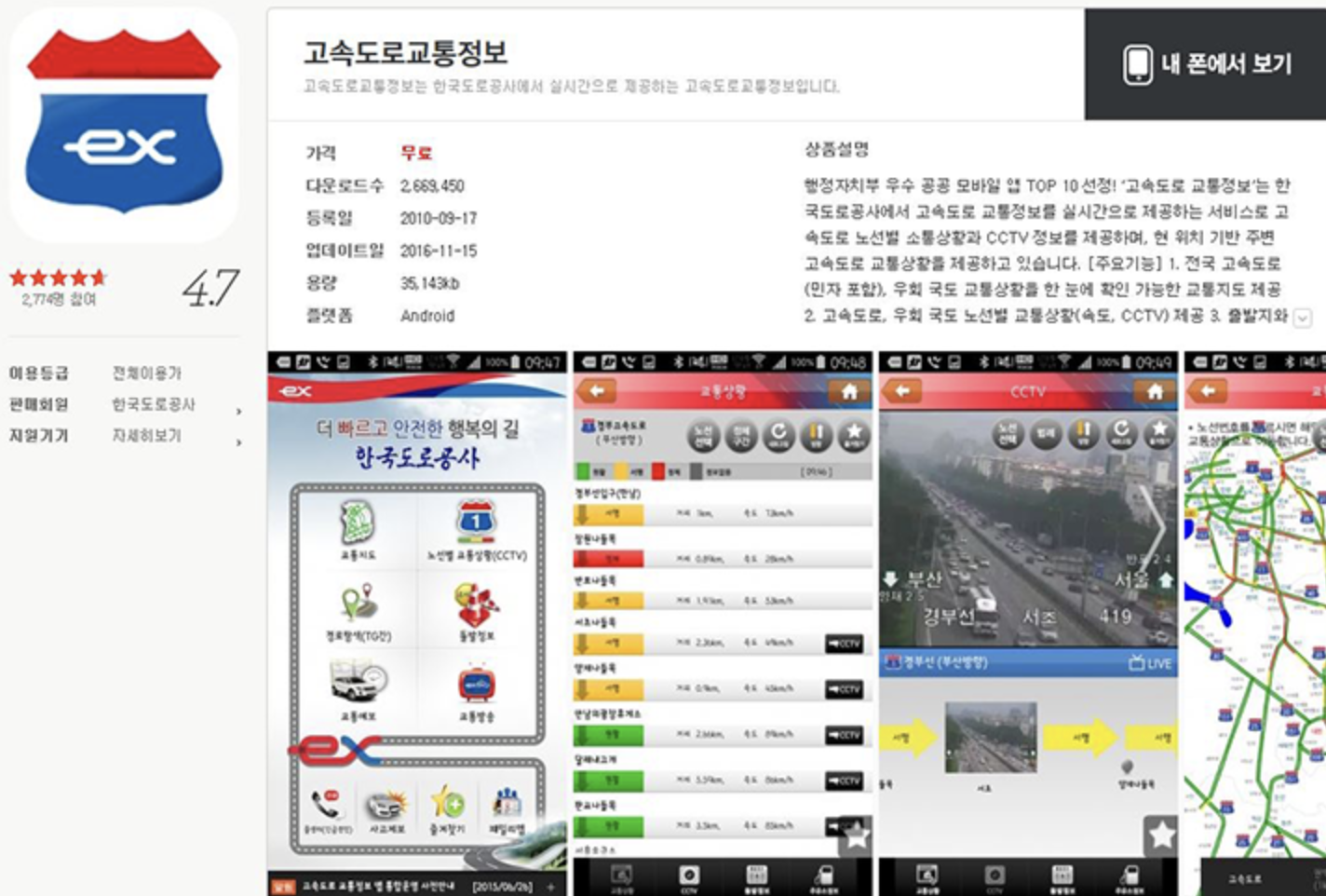 → 도로별 사고, 소통, CCTV 영상 확인 가능.