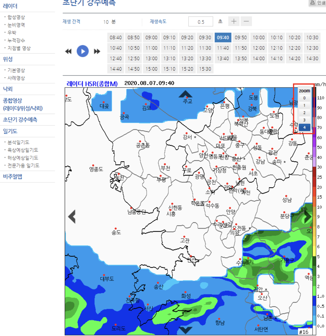 - 현재 강수 상황