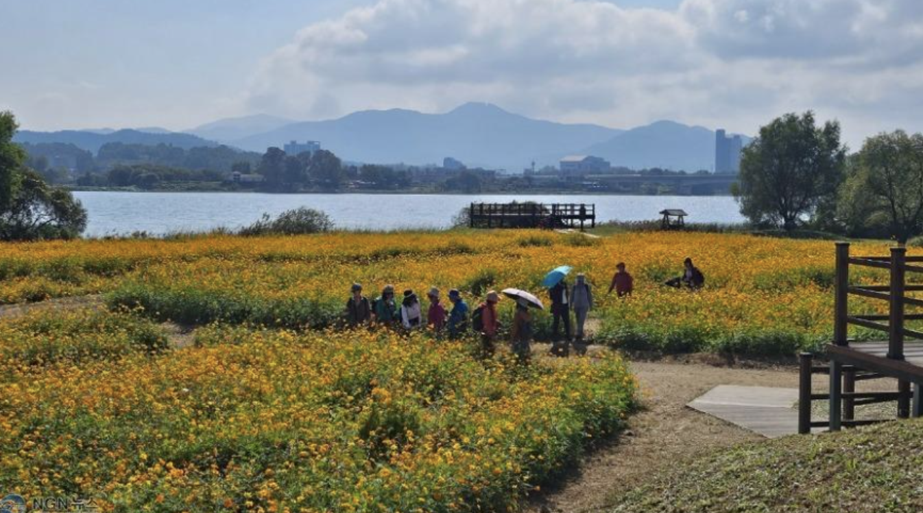 한강을 따라 이어진 산책로와 억새밭이 유명해요.
